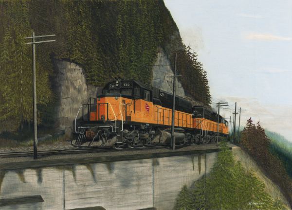 he rounds the big curve below McClellan Butte. The train is at milepost 2127,